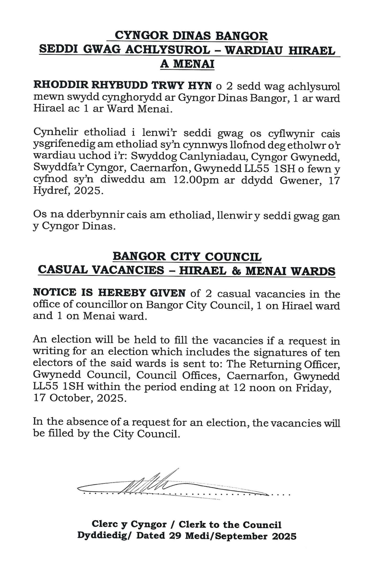 For further information please contact Lyn Parry at Bangor City Council on 01248564168.